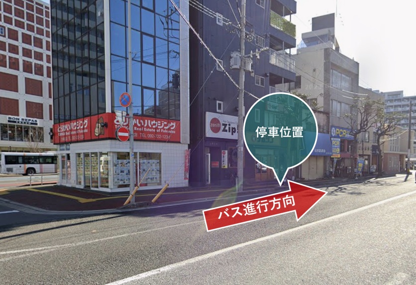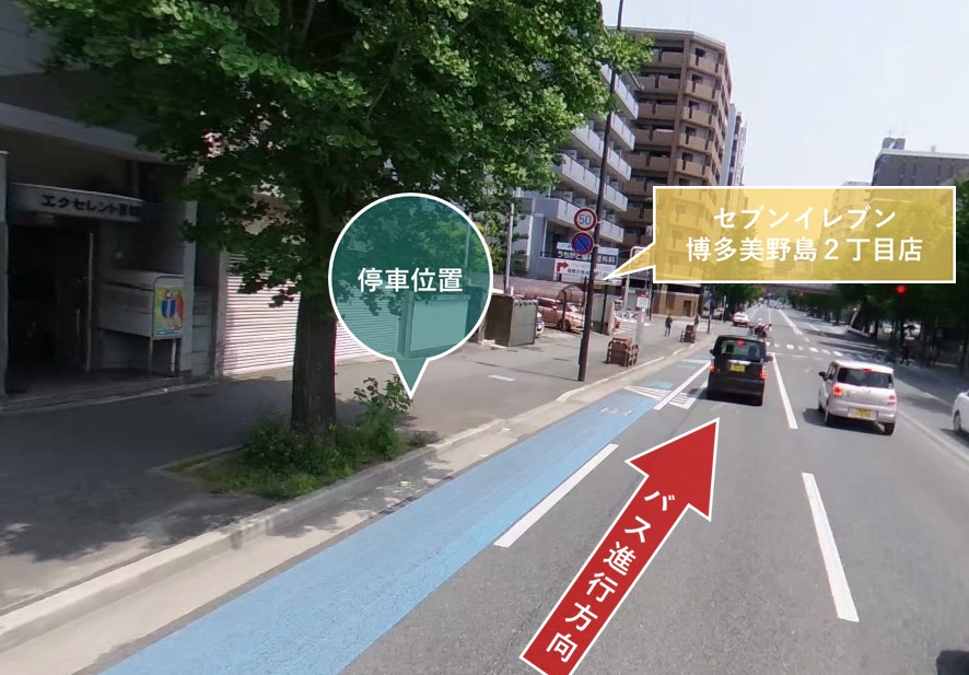 バス停付近の停車位置では、バス停から離れてお待ちください。
