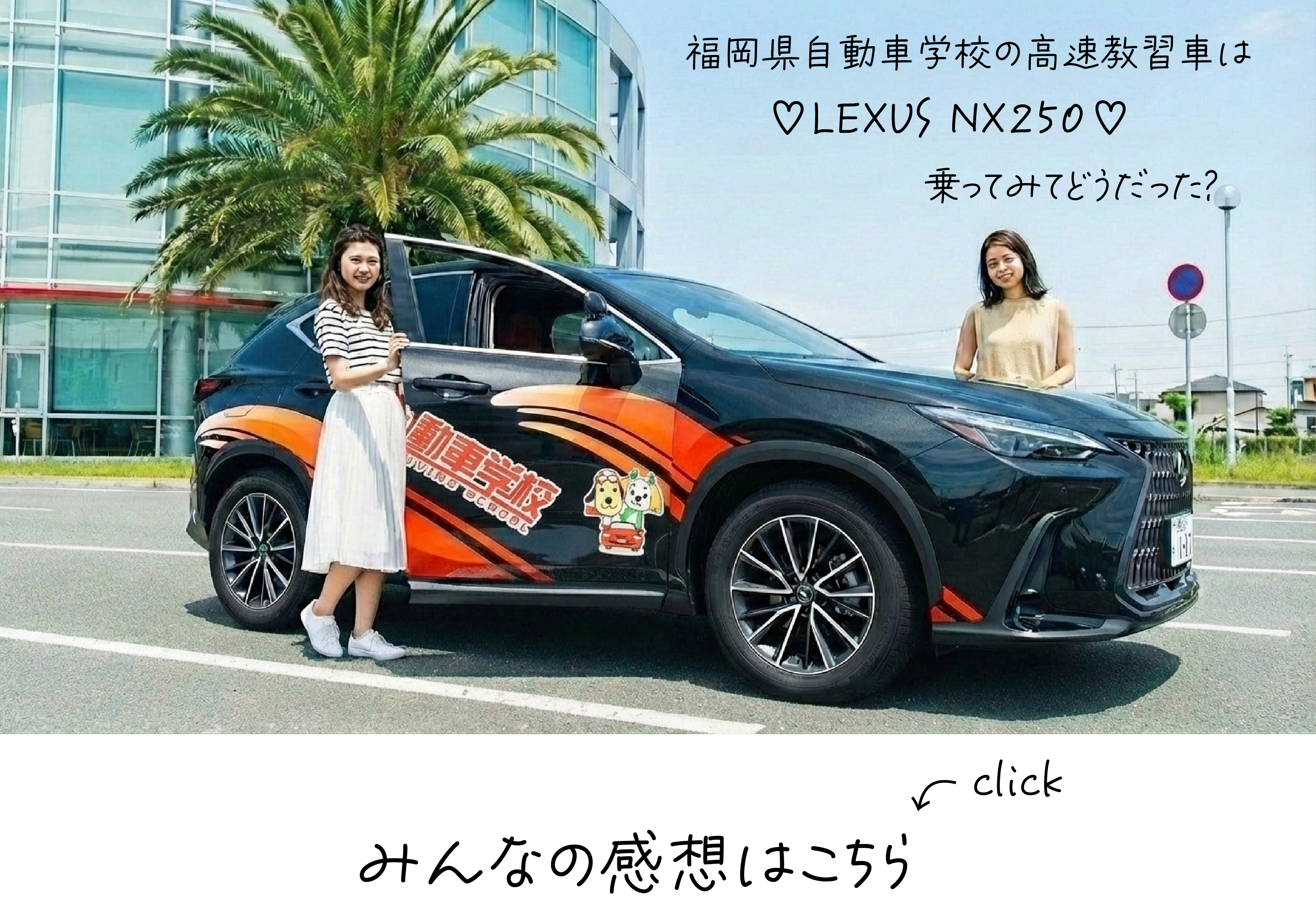 当校では、2025年11月1日より、LEXUS NX250を新たに高速教習専用車として導入いたします。 LEXUSブランドが誇る高い安全性能と快適な走行性能を備えたNX250を採用することで、教習生の皆さまに、より実践的で安全かつ快適な高速教習体験を提供いたします。 NX250は、先進の予防安全技術「Lexus Safety System +」を搭載し、高速道路での走行安定性や運転支援機能に優れております。これにより、教習中の安全性を一層高めるとともに、実際の交通環境に近い運転体験を通じて、教習生の運転技術向上を目指します。 当校は今後も、最新の車両設備と質の高い指導を通じて、地域社会に貢献できるドライバーの育成に努めてまいります。