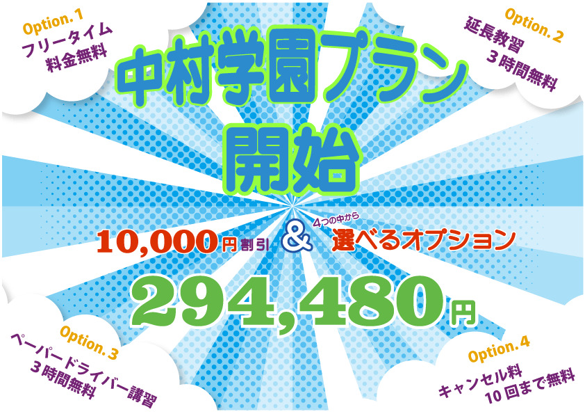 中村学園の学生である間はペーパードライバー講習3時間が1回無料で受講できます。